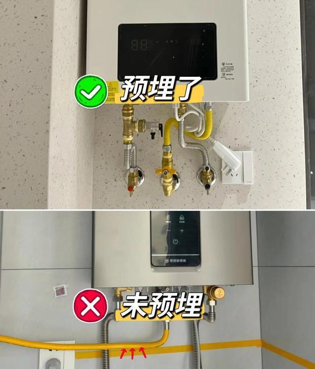 预埋后:在装修时预先铺设好燃气热水器所需的燃气管和水管,热水器安装时只需简单连接即可,既美观又方便。同时,预埋的管路也能减少安全隐患,让使用更加安心。