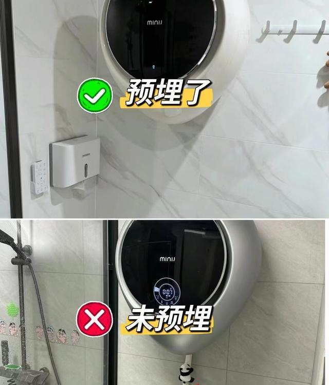 预埋后:在装修时预先铺设好壁挂式洗衣机所需的水管和排水管,洗衣机安装时只需简单连接即可,既美观又方便。同时,预埋的管路也能减少安全隐患,让使用更加安心。