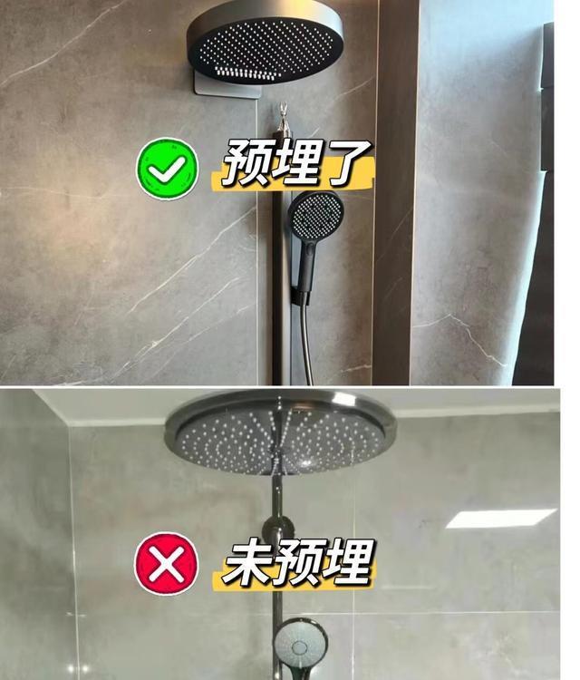 预埋后:在装修时预先铺设好暗装花洒所需的管道,花洒安装后看起来更加简洁大方。同时,预埋的管道也能减少水垢积累,让清洁更加轻松。