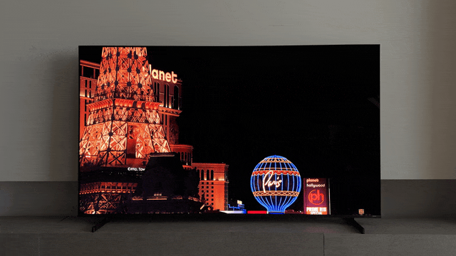 首先,IT之家播放了一些高动态范围的 4K 演示片,尤其是一些包含深邃夜空和城市灯光的片段。在普通电视上,明亮的灯光周围往往会伴随着一圈肉眼可见的“光晕”,这是由于背光控制不够精细,光线溢出到了本应纯黑的区域所致。